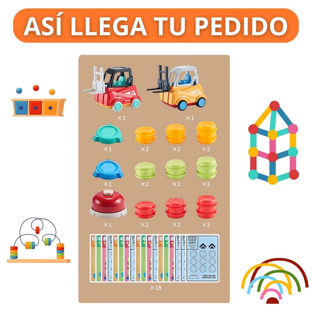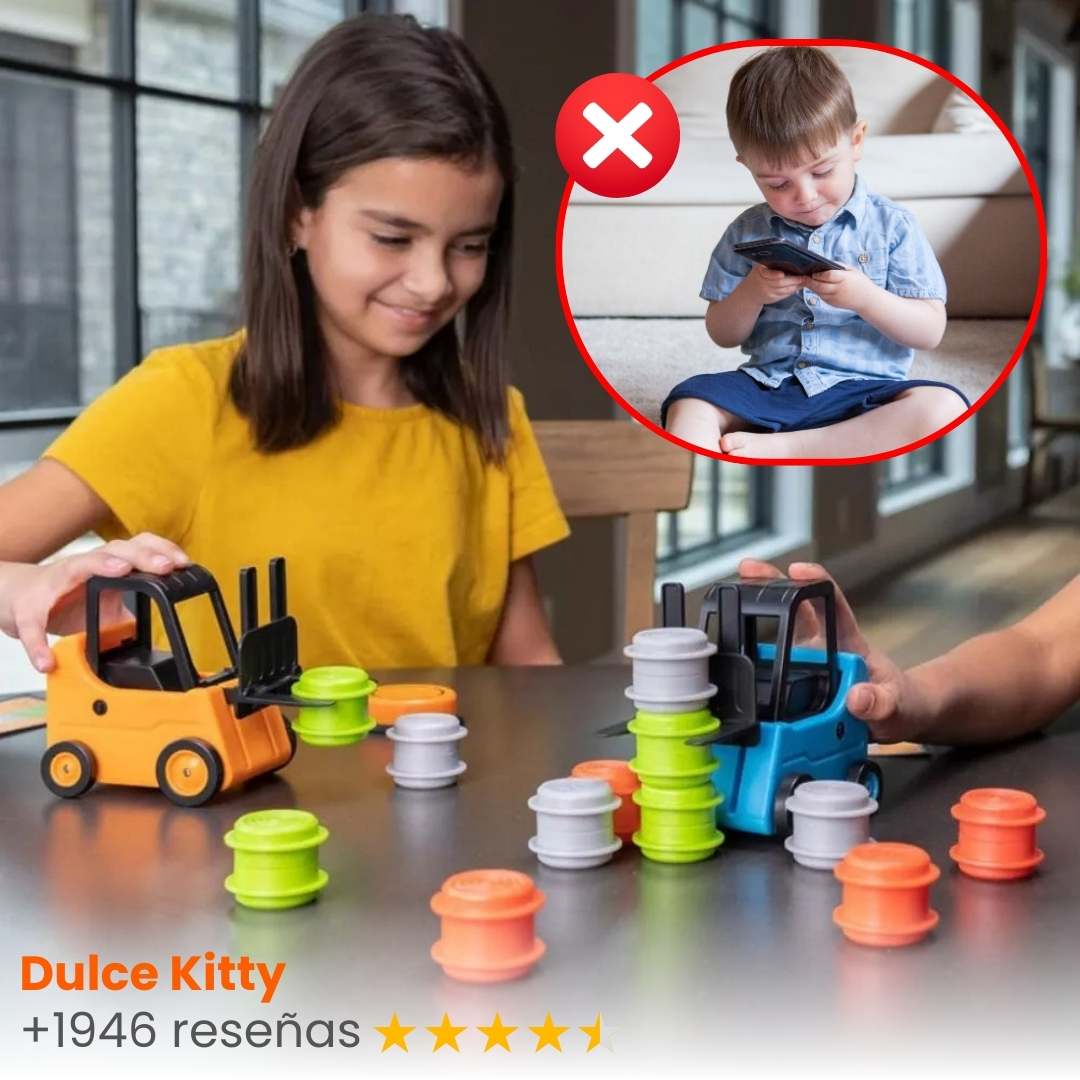 Está diseñado para ser el juego ideal que desafía y entretiene a niños y adultos. Con dinámicas de apilamiento y transporte.